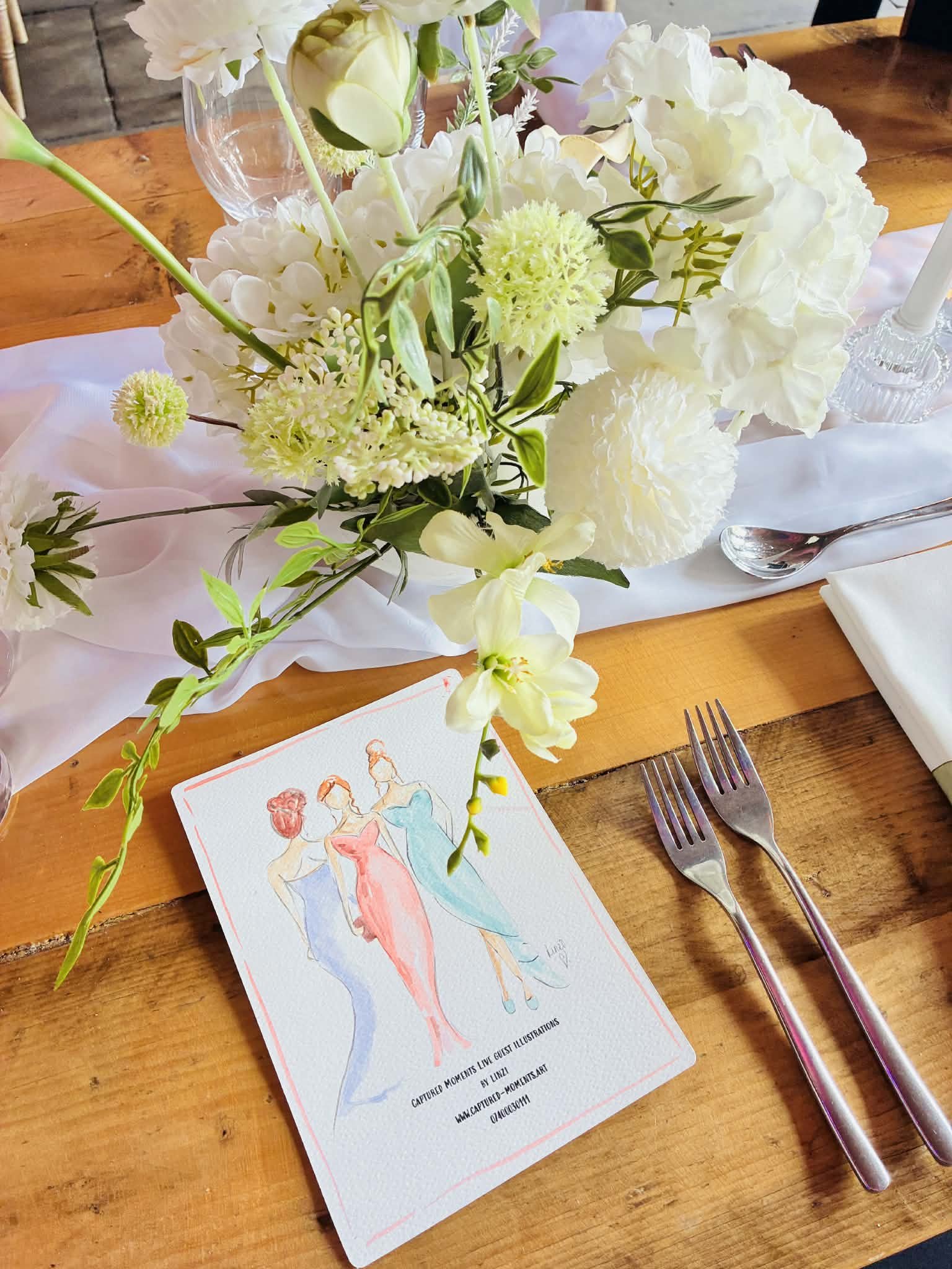 Add a personal touch to your wedding with live watercolour paintings of your guests and moments. My elegant miniature portraits in A5 or A6 are a unique and heartfelt keepsake for both you and your guests to cherish.